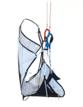 Zintegrowany kontener na spadochron ratunkowy znajduje się z tyłu, za protektorem. Uchwyt wyzwalający umieszczony jest w łatwo dostępnym miejscu na prawym boku uprzęży.