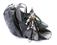 ZakoSeat to odwracalny uprzężo-plecak, co oznacza, że uprząż po odwróceniu na lewą stronę staje się plecakiem, który pomieści skrzydło do speedfyingu (pojemność plecaka to 43 litry).